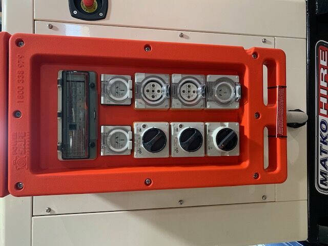 60 KVA diesel powered generator that produces single phase & three phase electricity to power electrical items. The generator has power outlets for direct connection to single phase or three phase power leads. It can also be connected to a distribution board or hard wired into electrical boxes, by a certified person, to power buildings.
